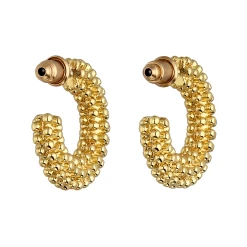Diese vergoldeten Creolen aus der aktuellen Kollektion von Angelina Pannek lassen sich hervorragend mit den unterschiedlichsten Looks kombinieren. Der Ohrschmuck mit strukturierter Oberfläche kann daher als elegantes Basik-Schmuckstück bezeichnet werden.