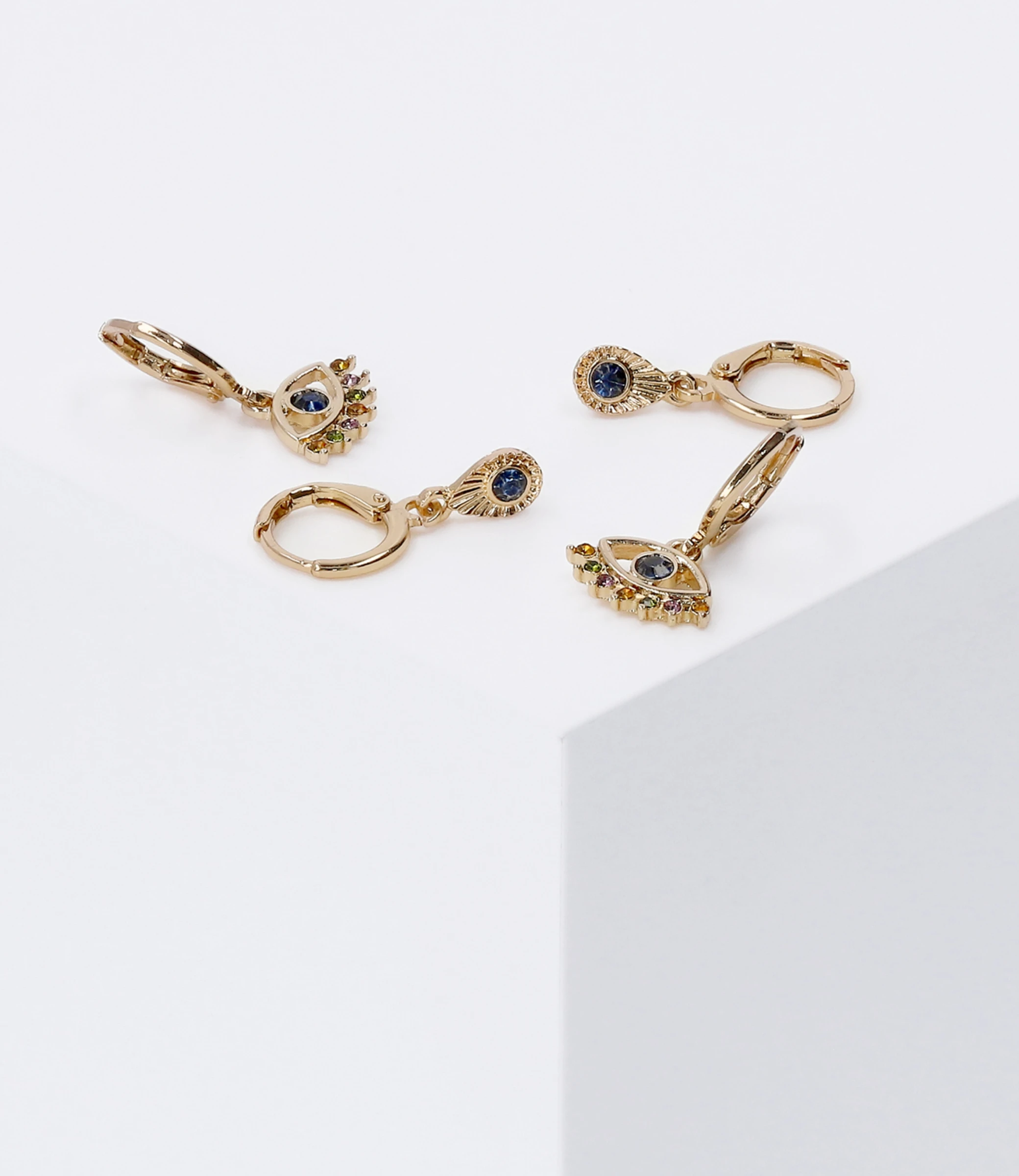 Accessories Huggie-Creolen Im Set Mit Augen-Muster Und Strasssteine