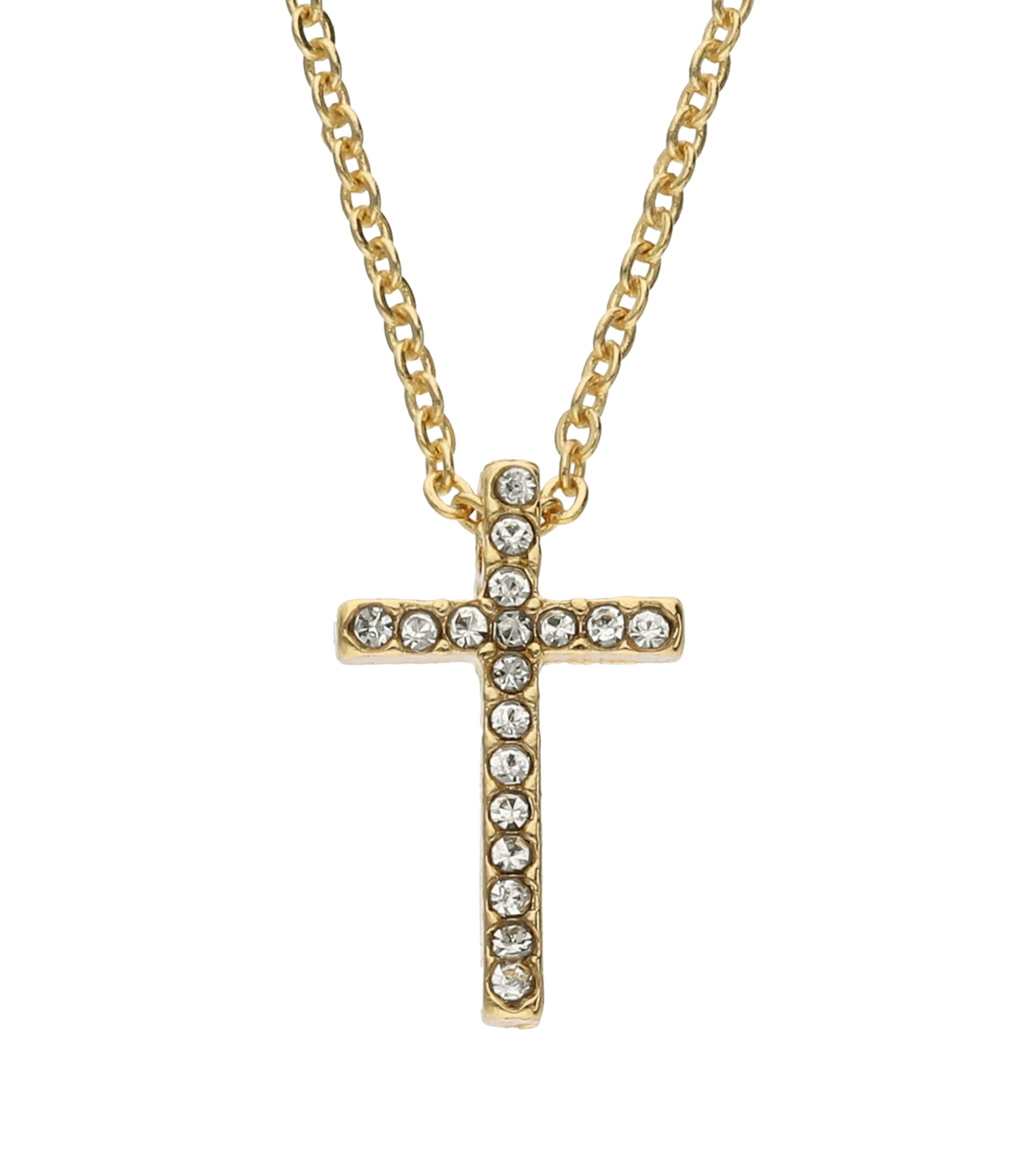 Im zeitlosen Design prĂ€sentiert sich diese schöne Kette mit Kreuz-AnhĂ€nger. Die eingearbeiteten Strasssteine setzen glĂ€nzende Akzente und kreieren einen tollen Look, der sich vielfĂ€ltig kombinieren lĂ€sst. Durch die hochwertige Vergoldung bekommt das SchmuckstĂŒck den letzten Schiff verpasst. Die Kette eignet sich hervorragend als Geschenk zum Geburtstag und zur Konfirmation oder Kommunion.