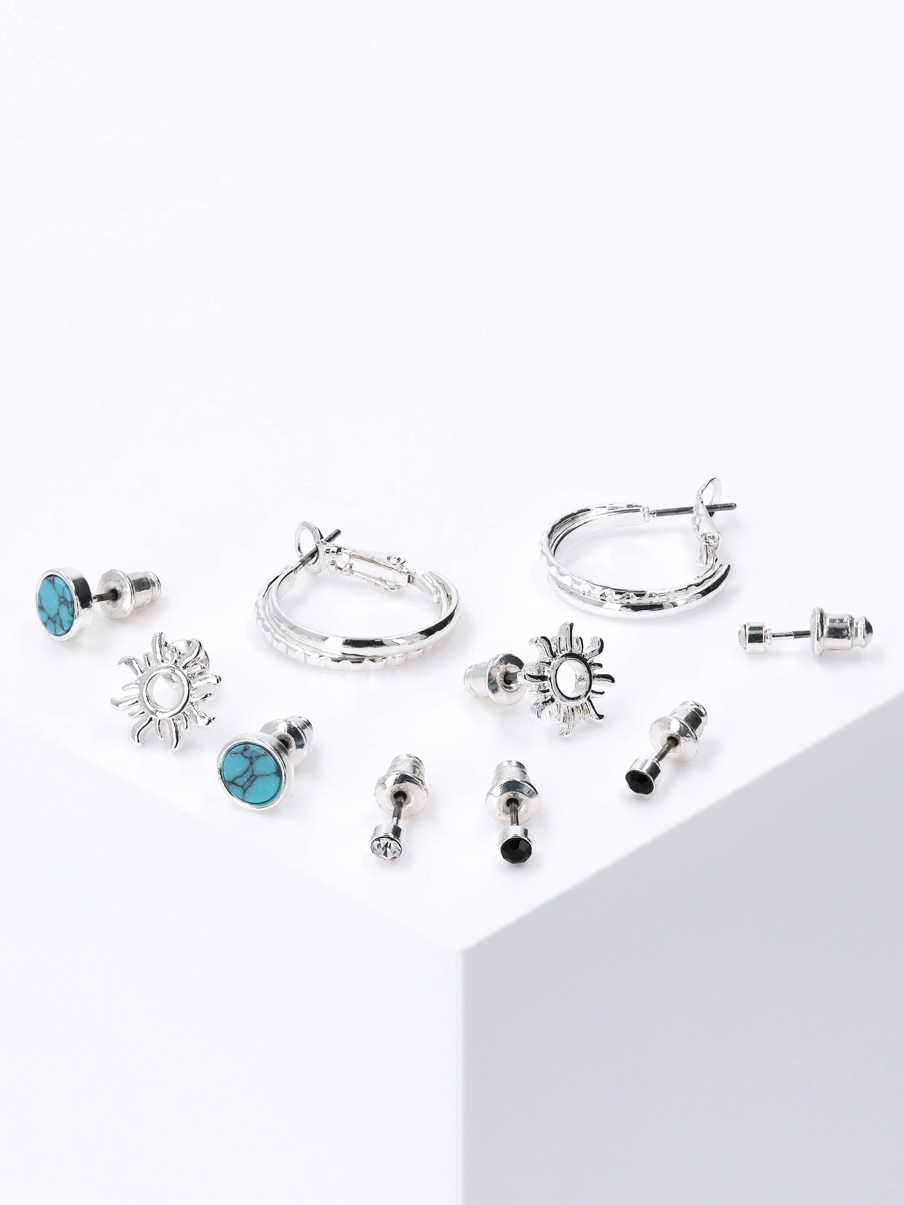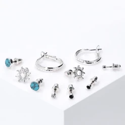 Mix & Match: Trage die Pieces einzeln oder kombiniere sie miteinander und kreiere einen tollen Earcandy-Look. Das Set besteht aus 5 Paaren – 1x Creolen und 4x Ohrstecker. Verziert mit Cut-Out-Sonnen-Motiven, Howlith-Schmucksteinen und Strasssteinen wird der Schmuck zum echten Eyecatcher! Ideal auch als Geschenk an Freunde und Familie.