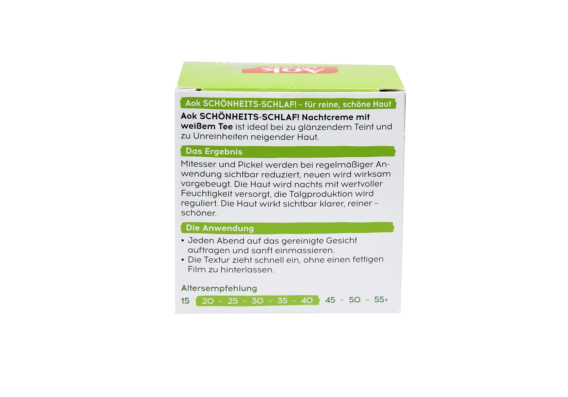Aok SCHÖNHEITS-SCHLAF! Nachtcreme mit Weißem Tee ist ideal bei zu glänzendem Teint und zu Unreinheiten neigender Haut.