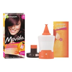 Garnier Movida Nr. 40 Dunkle Kirsche lässt das Haar in einem leuchtenden Rot-Violett mit leuchtenden Reflexen erstrahlen. Die sanfte Intensiv-Tönung verleiht dem Haar einen natürlichen Glanz und ausdrucksstarke Leuchtkraft. Sogar graue Haare werden schonend abgedeckt.Die Anwendung der geschmeidigen Tönungscreme gelingt schnell und unkompliziert dank des sicheren COLORCLIC-Systems. Die Creme von Garnier Movida Nr. 40 Dunkle Kirsche wird nach dem Mischen direkt aus der Flasche aufs trockene Haar aufgetragen, ohne dabei zu tropfen.Die beiliegende Pflege-Creme verwöhnt das Haar mit reichhaltiger Pflege. Die Formel mit Aprikosenmilch verleiht dem Haar Volumen und Geschmeidigkeit.