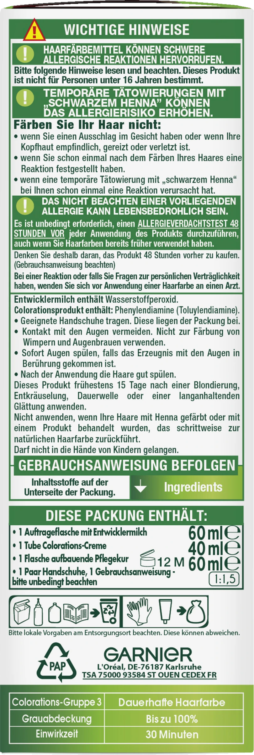 HAARFÄRBEMITTEL KÖNNEN SCHWERE ALLERGISCHE REAKTION HERVORRUFEN.