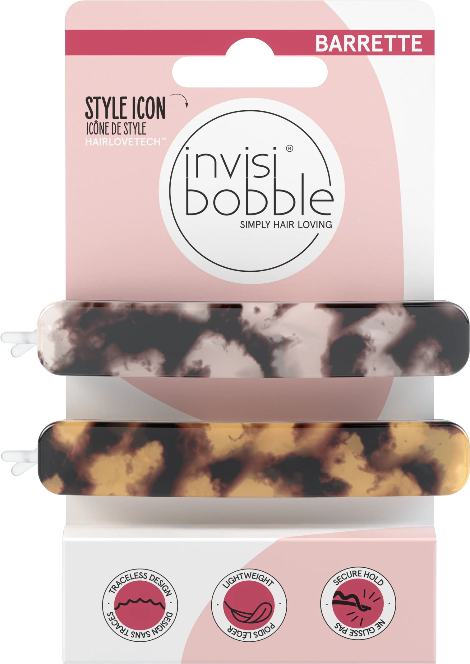 invisibobble BARRETTE, die stilvolle Haarspange. Das klassische Haar-Accessoire kommt dank HAIRLOVETECH™ ohne Metall aus und ist somit sehr leicht. Dies führt zu einem starken Halt ohne zu Verrutschen und einem langlebigen Produkt!