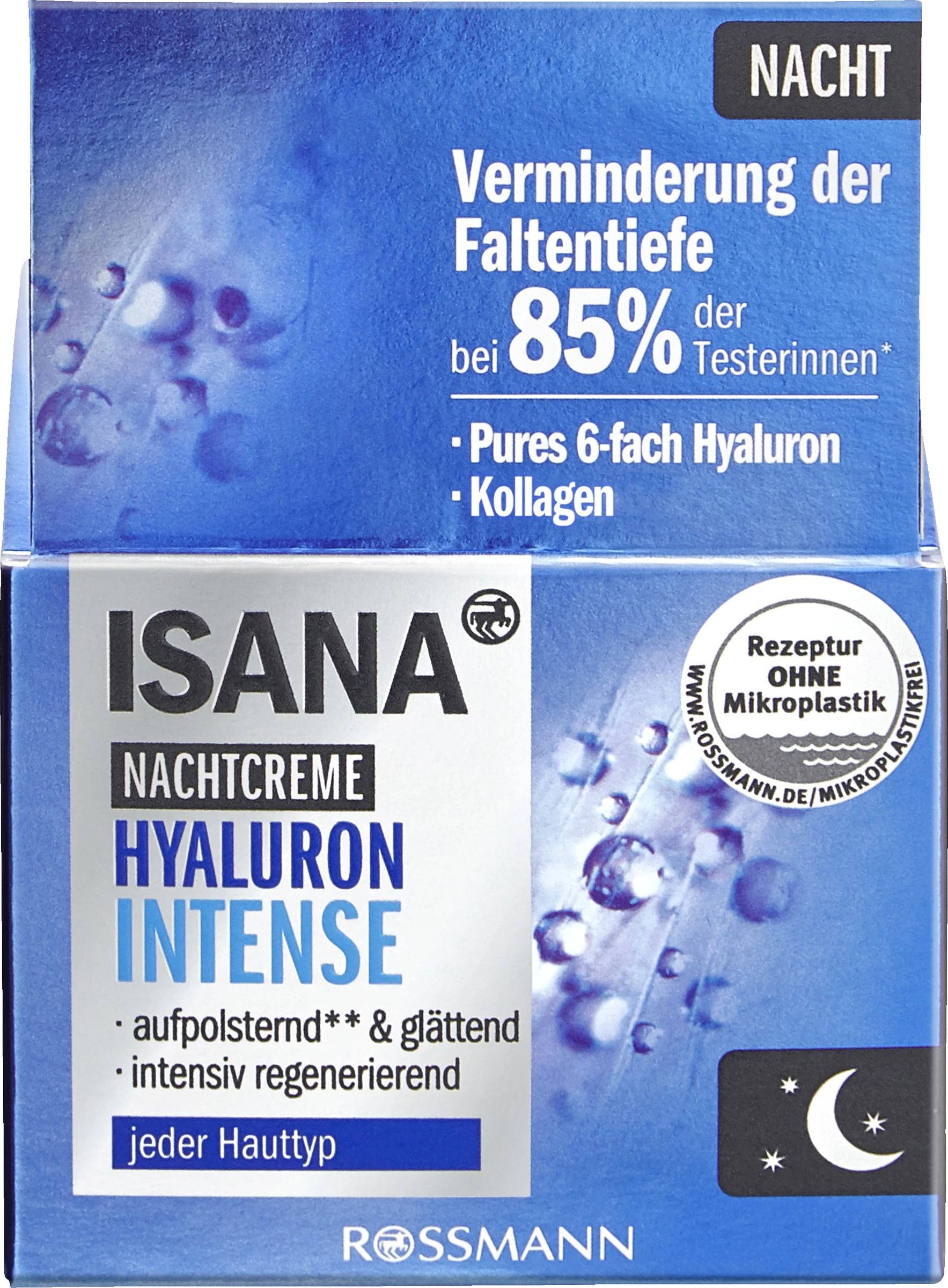 Die Hyaluron Intense Nachtcreme hydratisiert die Haut sofort, mildert Falten und unterstützt die hauteigene Regeneration über Nacht. Marines Kollagen speichert Feuchtigkeit in der Haut und nimmt dabei bis zu 10-fach an Volumen zu.