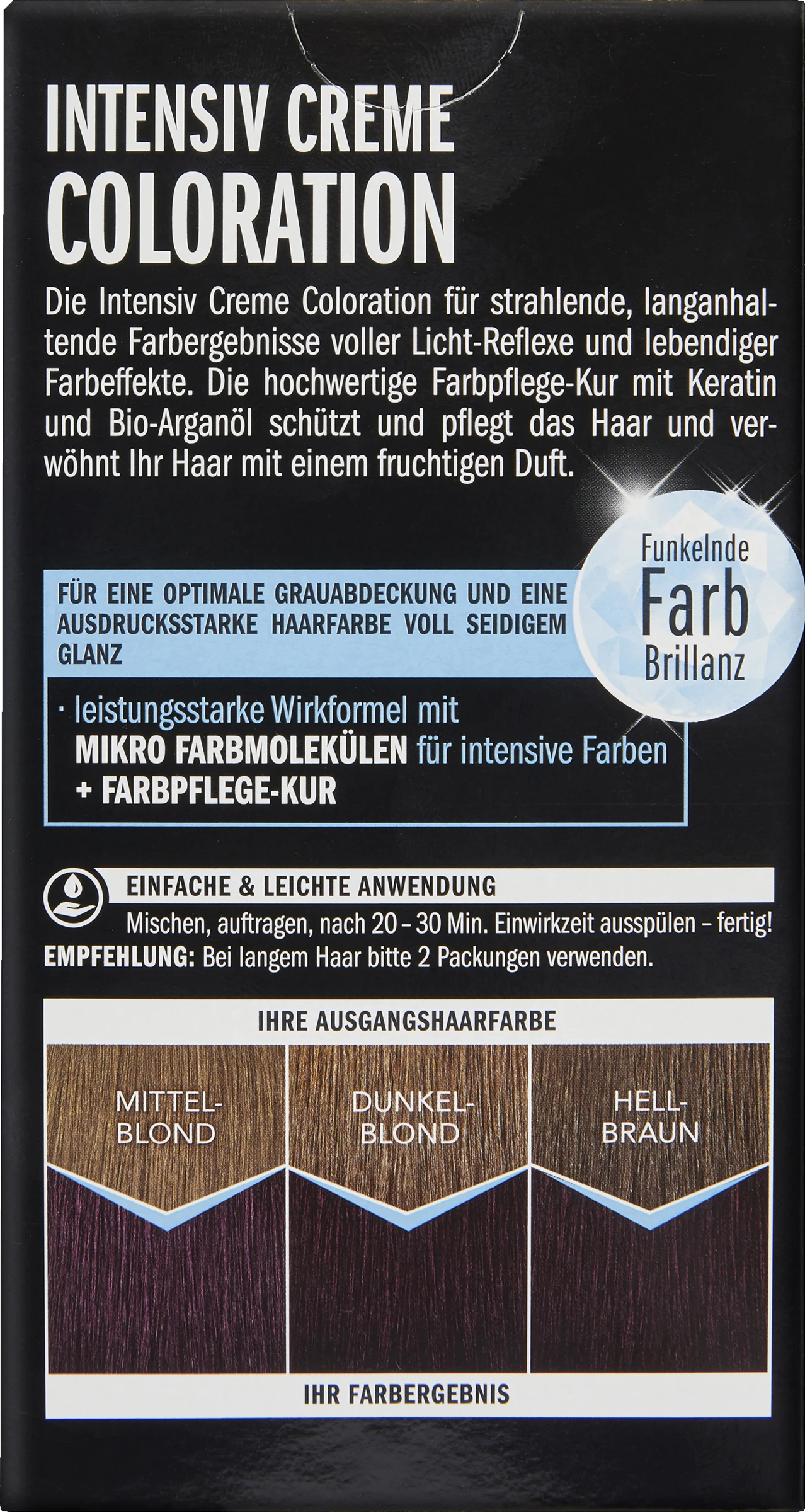 Die Intensiv Creme Coloration für strahlende, langanhaltende Farbergebnisse voller Licht-Reflexe und lebendiger Farbeffekte. Die hochwertige Farbpflege-Kur mit Keratin und Bio-Arganöl schützt und pflegt das Haar und verwöhnt Ihr Haar mit einem fruchtigen Duft.