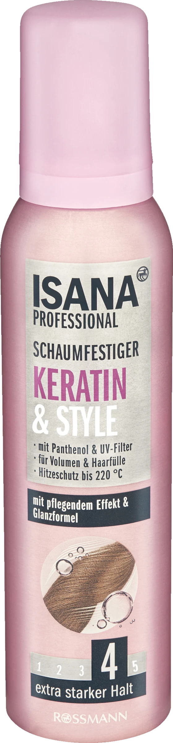 Der ISANA PROFESSIONAL SCHAUMFESTIGER KERATIN & STYLE mit Panthenol & UV Filter verleiht dem Haar mit einer speziell entwickelten Volumen-Formel sichtbar mehr Fülle und einen dezenten Glanz. Die Formulierung mit hochwertigem Keratin sorgt für mehr Geschmeidigkeit und Pflege – für einen perfekten Look. Kein Verkleben und kein Beschweren. Für 48h Halt.Diese Rezeptur ist zu 100% ohne Mikropastik.