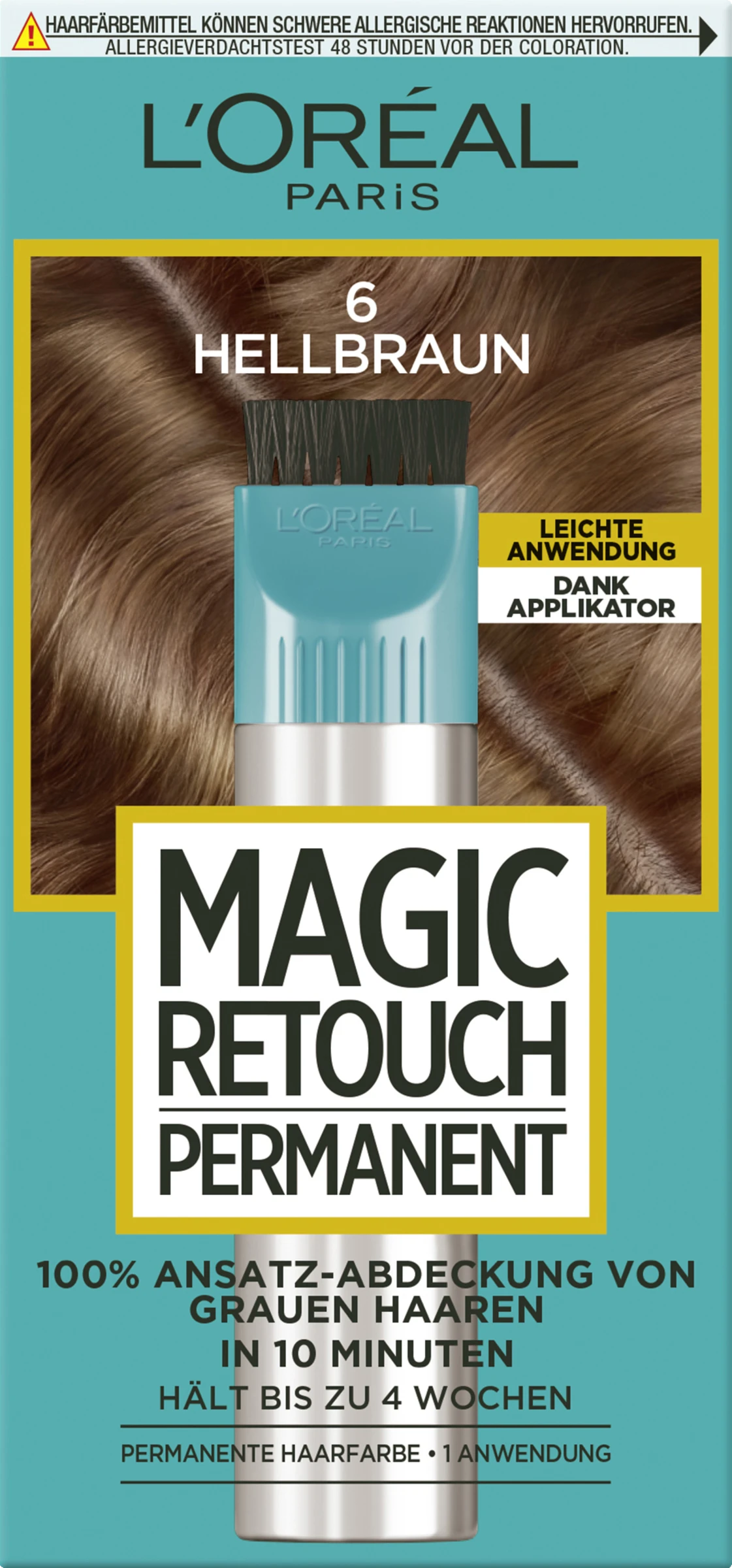 Die Coloration Ihrer Haare liegt noch nicht so lange zurück und doch ist der Ansatz schon wieder sichtbar? Mit der Magic Retouch Permanent Ansatz-Abdeckung von L’Oréal Paris können Sie Ihren Haaransatz in nur wenigen Minuten kaschieren. Ein grauer oder dunkler Ansatz verschwindet im Handumdrehen. Die Ansatz-Abdeckung eignet sich optimal für eine Anwendung zwischen zwei Colorationen und bietet einen zuverlässigen Halt für bis zu vier Wochen.