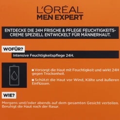 Morgens und/oder abends auf dem gesamten Gesicht verteilen. Die Formel beruhigt die Haut auch nach der Rasur.