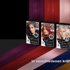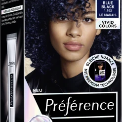 Entdecken Sie unsere innovative Préférence Expertise jetzt bei den Vivid Colors. Die Formel besticht durch eine Mischung aus leistungsstarken Farbstoffen – ausgewählt von unseren Haarfärbeexperten für hochintensive, schimmernde Farben. Die Gel Textur ist für alle Haartypen geeignet und ermöglicht durch ein 150ml Mix-Kit eine spielend leichte Anwendung.Der Farbglanz-Pflegebalsam mit UV-Filter erhält den Glanz Ihrer Nuance bis zu 8 Wochen bei wöchentlicher Anwendung.Die Nuance Blue Black wurde von dem Fashio Street Style aus Le Marais in Paris mit ihren ikonischen blauen Jeans inspiriert und kreiert einen ganz individuellen Look.
