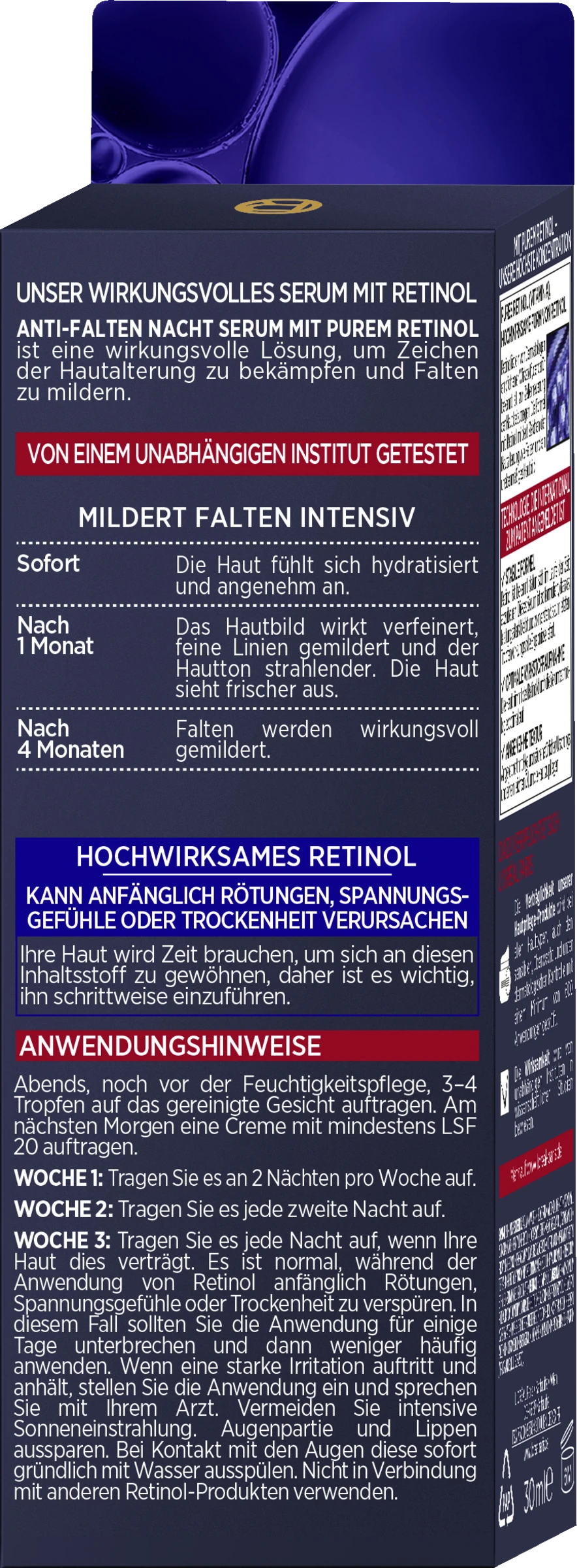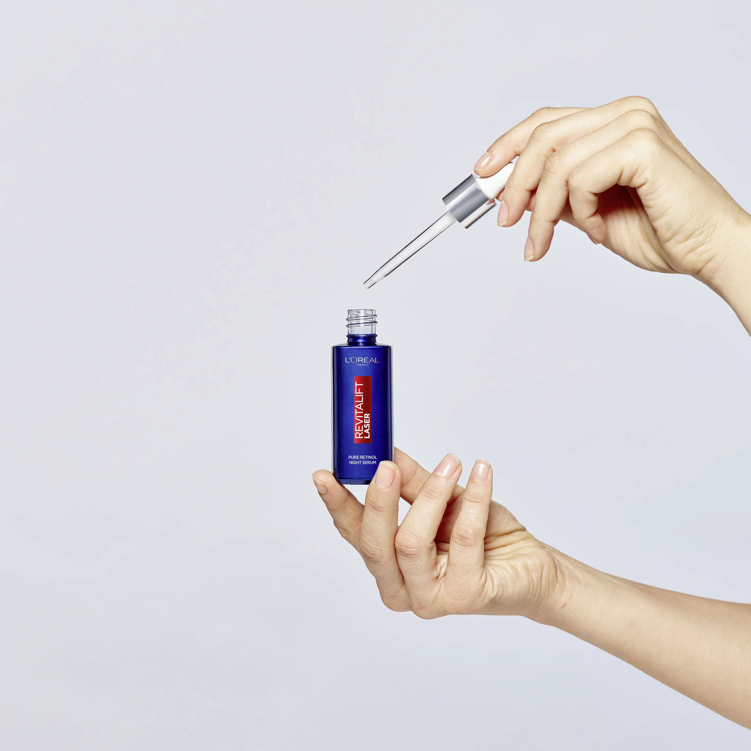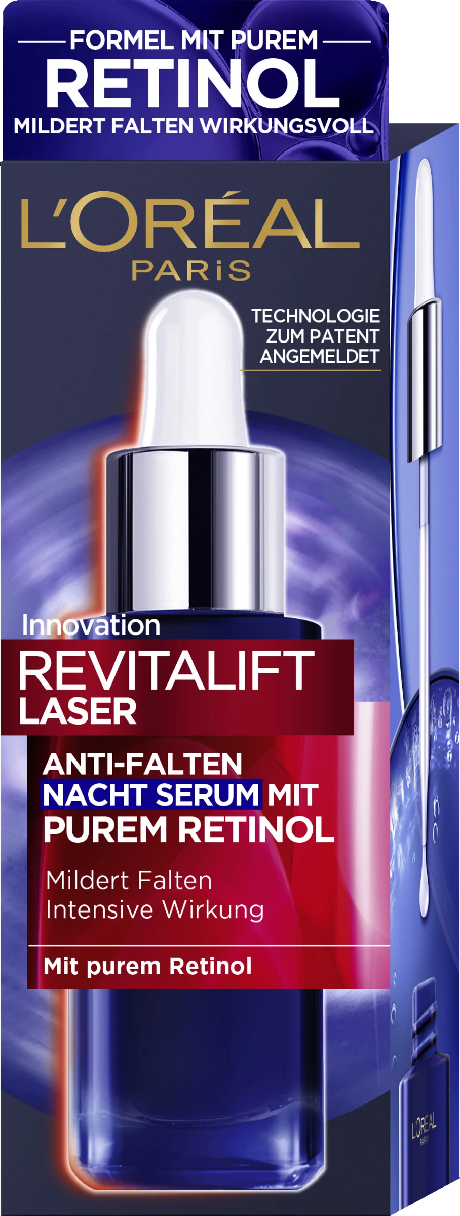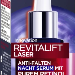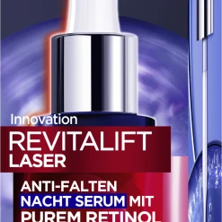 L’Oréal Paris Revitalift Laser Anti-Falten Nacht Serum mit Purem Retinol ist eine wirkungsvolle Lösung um alle Zeichen der Hautalterung zu bekämpfen und Falten zu mildern. Bereits nach der ersten Anwendung ist die Haut hydratisiert. Nach 4 Wochen sind Falten und feine Linien gemildert und die Haut wirkt jugendlicher.