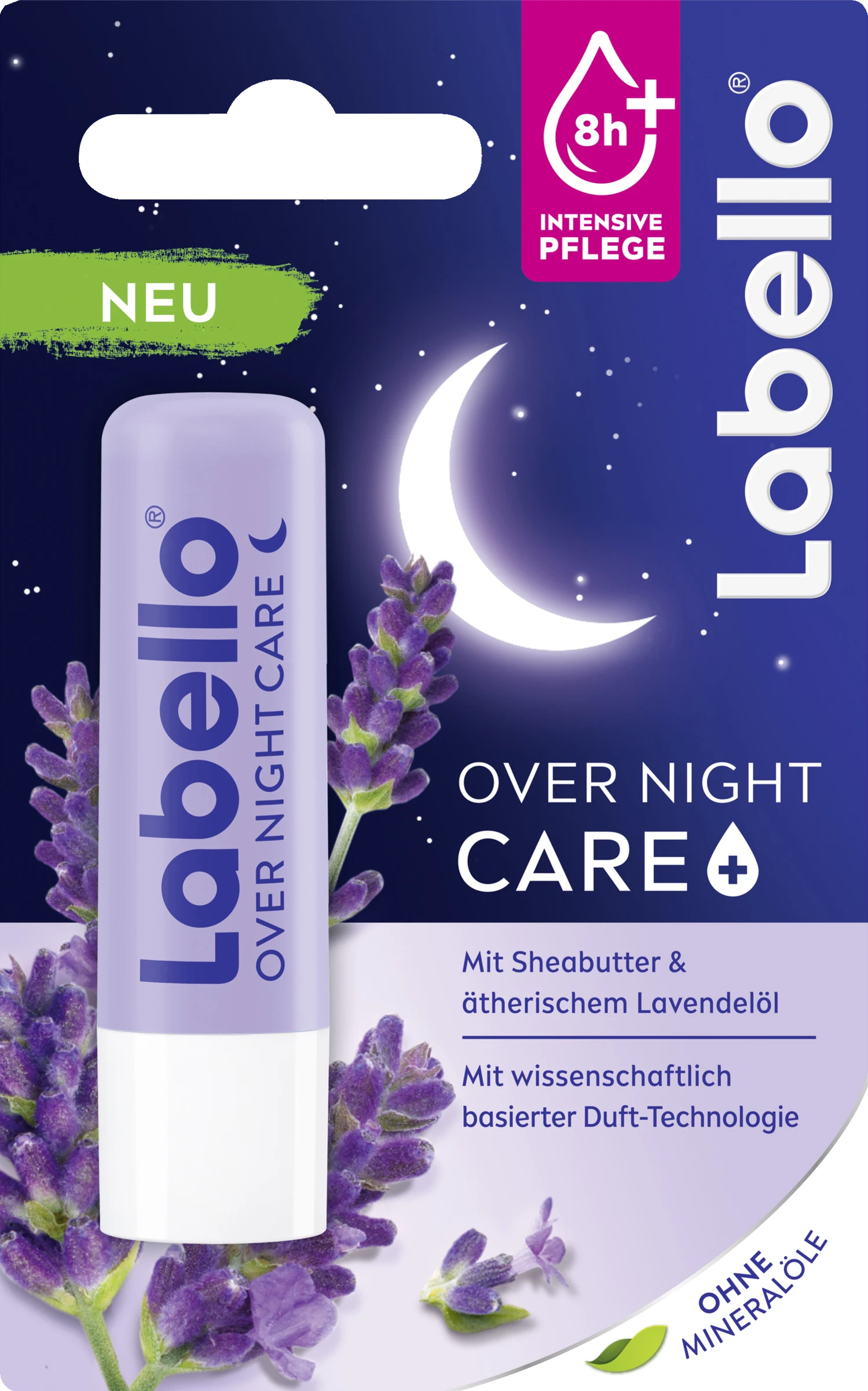 Schönheitsschlaf für deine Lippen: Dein bewusster Ruhemoment vor dem Einschlafen mit dem neuen Labello Over Night Care! Die ideale Ergänzung für deine tägliche Abendroutine. Dank wissenschaftlich basierter Duft-Technologie sorgt der Lippenpflegestift für ein beruhigendes Dufterlebnis mit ätherischem Lavendelöl. Die Formel mit Sheabutter und pflegenden, natürlichen Ölen verwöhnt und beruhigt die Lippen über Nacht. Starte mit spürbarweichen und zart gepflegten Lippen in den Tag.