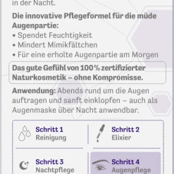 Abends rund um die Augen auftragen und sanft einklopfen – auch als Augenmaske über Nacht anwendbar.