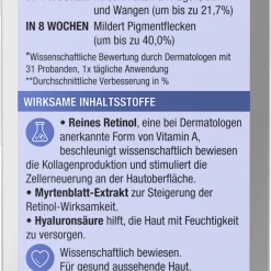 Rötung, Wärme, Kribbeln oder Schuppung sind normale, vorübergehende Anzeichen dafür, dass die Formel wirkt. Wenn diese Anzeichen Unbehagen bereiten, beschränken Sie die Anwendung auf 1x jeden zweiten Tag bis sich Ihre Haut an den Inhaltsstoff gewöhnt hat. Bei anhaltender HautreaktionAnwendung stoppen. Kontakt mit den Augen vermeiden.