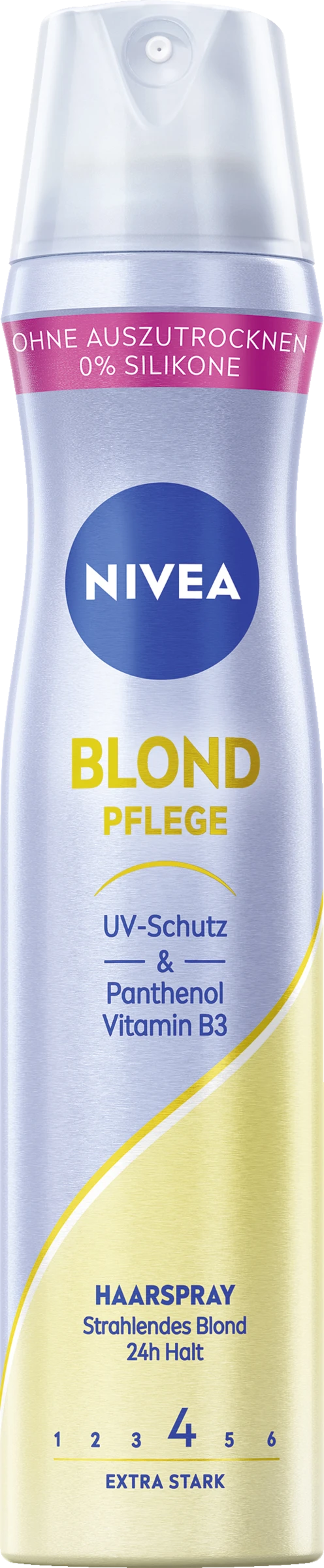 Stylen Sie Ihr blondes Haar und verleihen Sie ihm ein perfektes Finish. Das Haarspray mit Panthenol und Vitamin B3 fixiert die perfekte Frisur für einen extra starken 24 Stunden Halt. Ob ein frecher Pixie-Cut, ein klassischer Bob oder eine lange Lockenmähne – blondes Haar bekommt einen farberfrischenden Glanz. Für strahlend schöne Blondinen: Blond Schutz Haarspray. Die Styling-Formel von NIVEA mit Panthenol und Vitamin B3 stärkt und schützt das Haar. Ohne auszutrocknen – einfach schön gestyltes Haar.