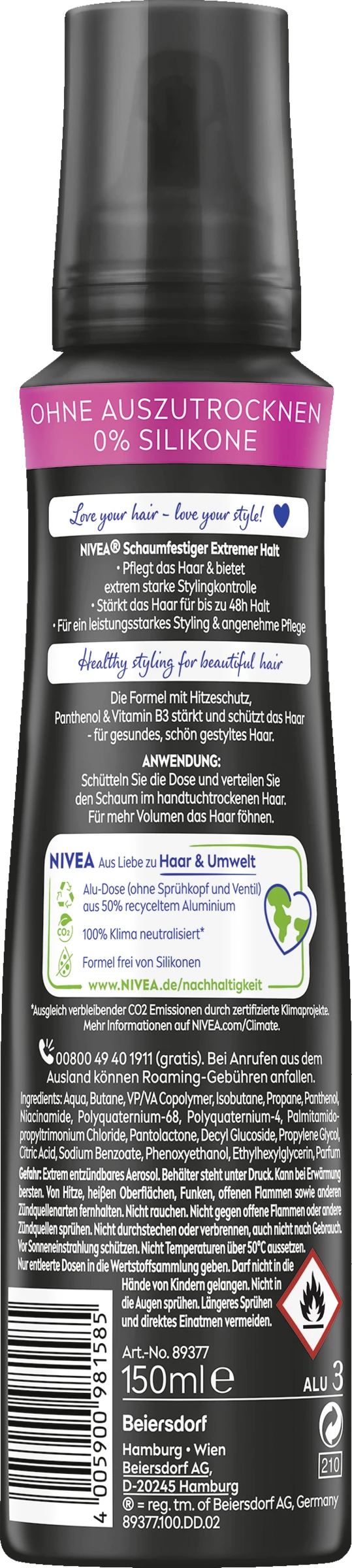 NIVEA Hair Styling – extremer Halt! Extrem starke Stylingkontrolle dank Haltegrad 6. 48 Stunden Halt, ohne Kompromisse. NIVEA Hair Styling Extremer Halt pflegt, stärkt und schützt das Haar.
