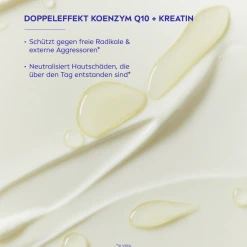Aqua, Glycerin, Butyrospermum Parkii Butter, Cetearyl Alcohol, Ethylhexyl Salicylate, Methylpropanediol, Glyceryl Stearate SE, Butyl Methoxydibenzoylmethane, Octocrylene, C12-15 Alkyl Benzoate, Caprylic/Capric Triglyceride, Phenylbenzimidazole Sulfonic Acid, Synthetic Beeswax, Ubiquinone, Creatine, 1-Methylhydantoin-2-Imide, Tocopheryl Acetate, Xanthan Gum, Carbomer, Dimethicone, Trisodium EDTA, Ethylhexylglycerin, Sodium Hydroxide, Phenoxyethanol, Benzyl Alcohol, Limonene, Parfum.