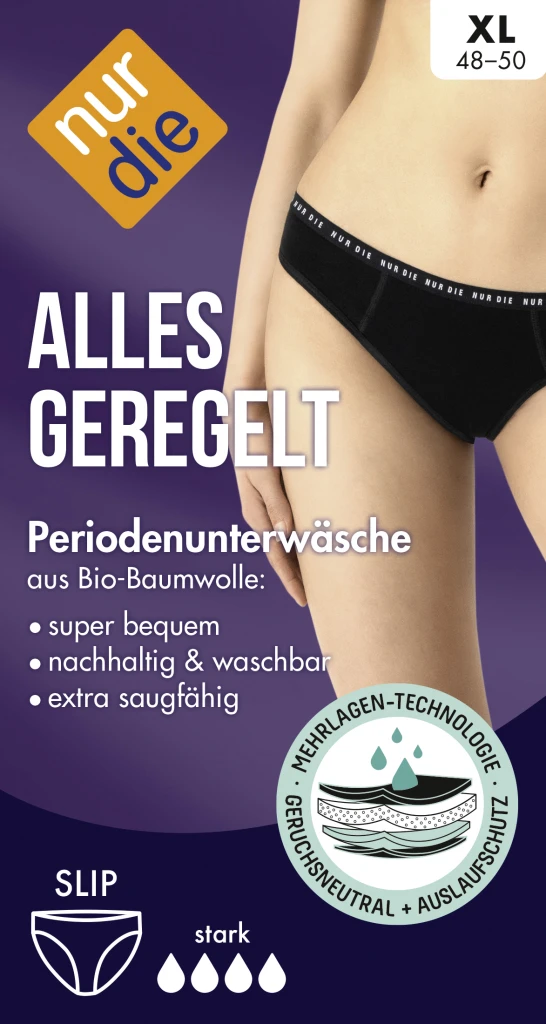 Alles geregelt Slip. Rundum wohlfühlen während deiner Tage? Die bequeme, waschbare Periodenunterwäsche bietet dir zuverlässigen Auslaufschutz für zu Hause und unterwegs. Für alle, die´s nachhaltig mögen – egal ob alleine oder als Backup zu Cups und Tampons.