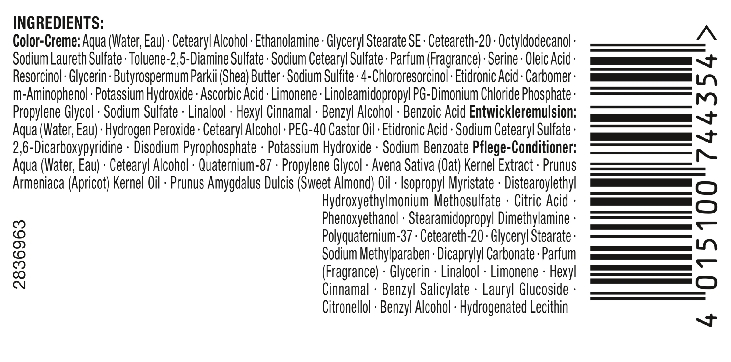 Haarfärbemittel können schwere allergische Reaktionen hervorrufen. Bitte folgende Hinweise lesen und beachten: Dieses Produkt ist nicht für Personen unter 16 bestimmt. Temporäre Tätowierungen mit „schwarzem Henna“ können das Allergierisiko erhöhen.