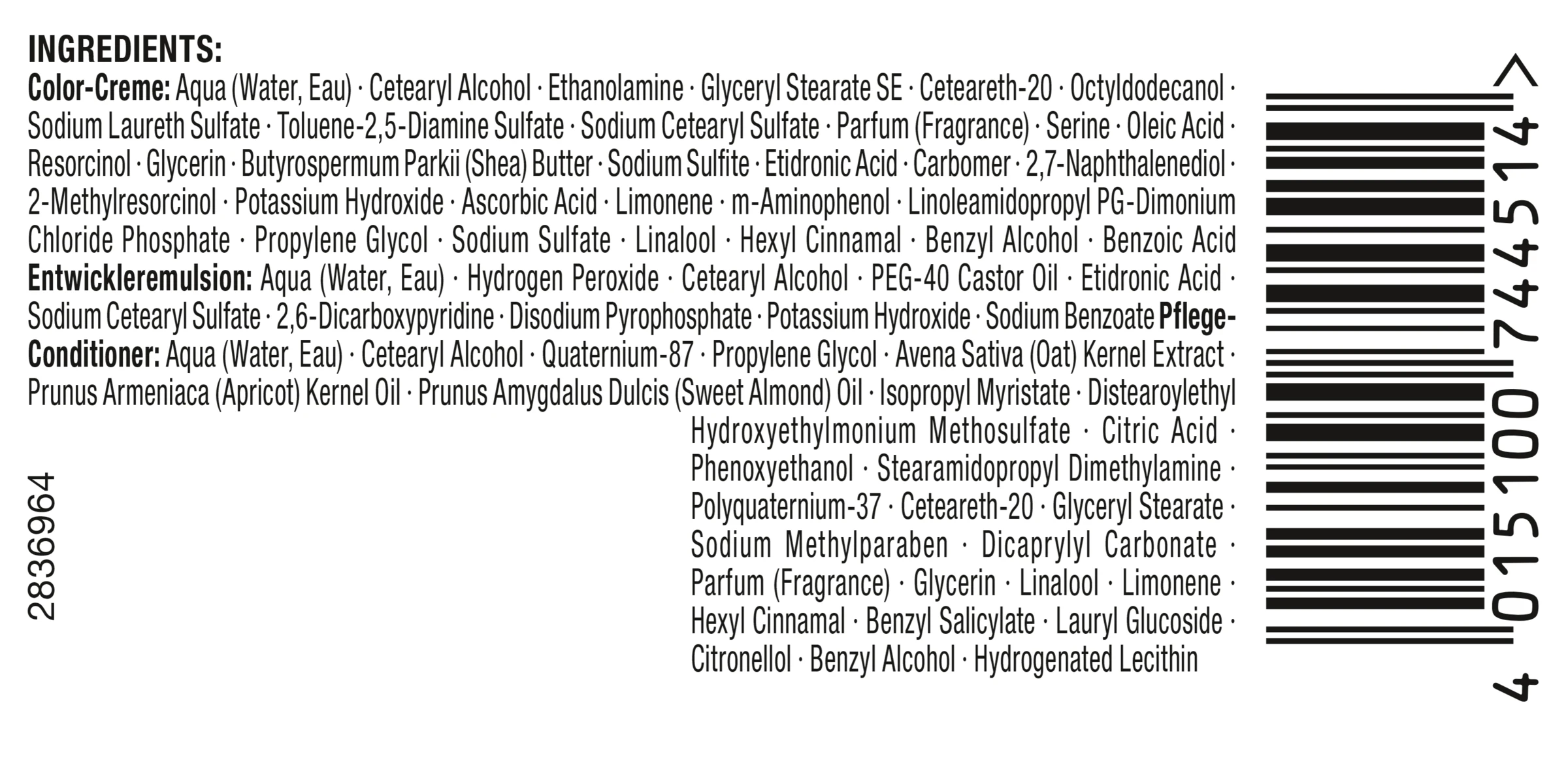 Haarfärbemittel können schwere allergische Reaktionen hervorrufen. Bitte folgende Hinweise lesen und beachten: Dieses Produkt ist nicht für Personen unter 16 bestimmt. Temporäre Tätowierungen mit „schwarzem Henna“ können das Allergierisiko erhöhen.