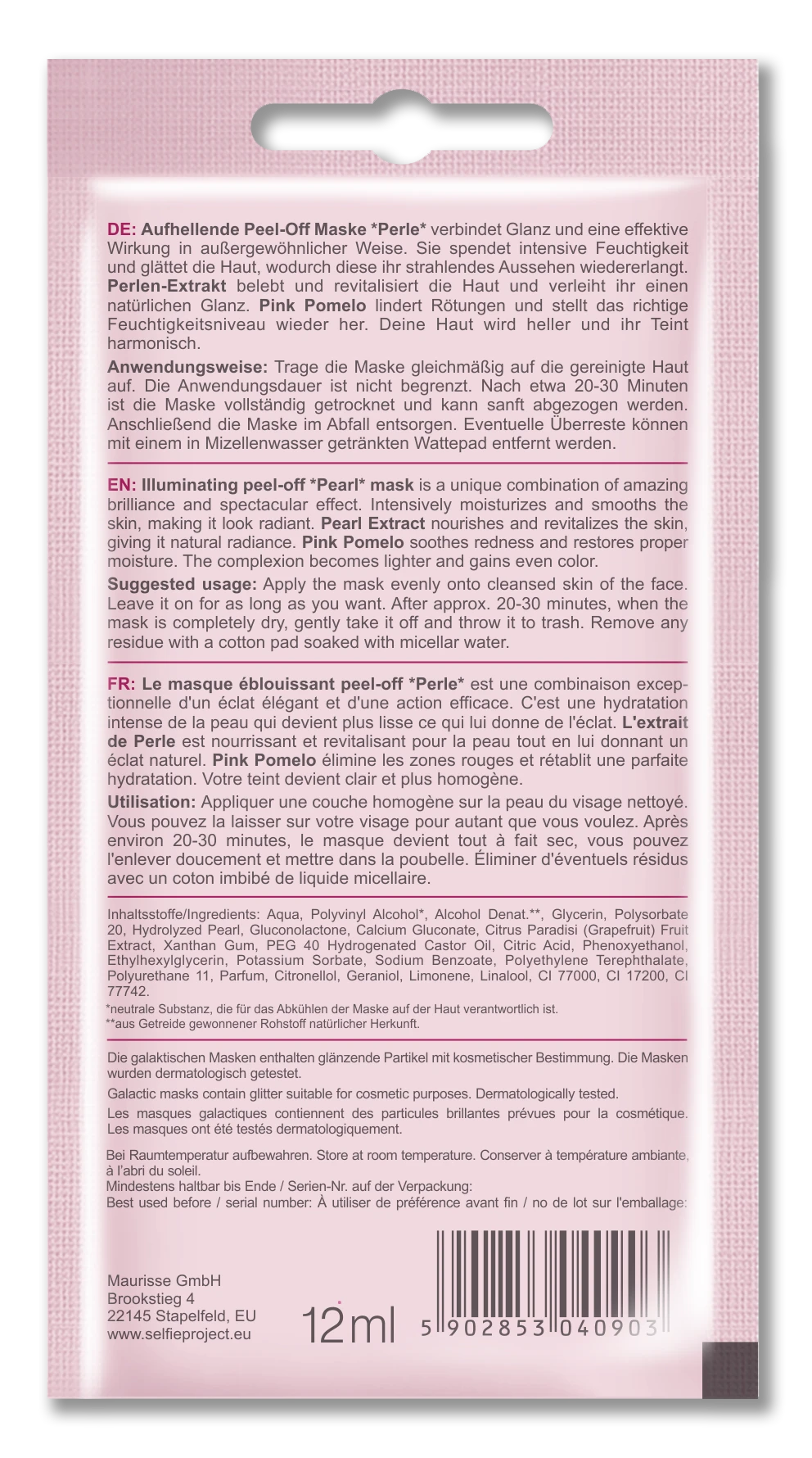 Tragen Sie die Maske gleichmäßig auf die gereinigte Haut auf. Die Zeit ist nicht von Bedeutung, Sie können Sie solange auf dem Gesicht belassen und glänzen, wie Sie möchten. Nach etwa 20-30 Minuten ist die Maske vollständig getrocknet, man kann sie sanft abziehen und in den Mülleimer werfen. Eventuelle Überreste sind mit einem mit Mizellenwasser getränkten Wattepad zu entfernen.