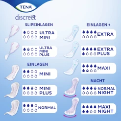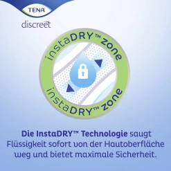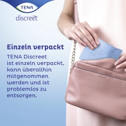 TENA Discreet Extra Inkontinenzprodukte bieten maximalen Schutz bei mittelstarkem, unfreiwilligem Harnverlust. Die InstaDRY™ Technologie saugt Flüssigkeit sofort auf und der superabsorbierende Kern schließt diese verlässlich im Inneren der Einlage ein, weg von der Haut. Dank Dreifachschutz vor Auslaufen, Feuchtigkeit und Gerüchen ist TENA Discreet Extra die ideale Wahl für jeden Tag für alle Frauen mit mittelstarker Blasenschwäche. Die weiche Inkontinenzeinlage ist bequem zu tragen, elastische Kanten sorgen für einen angenehmen, körpernahen Sitz. Fühlen Sie sich mithilfe sofortiger Flüssigkeitsabsorption und der bequemen Passform jederzeit sicher – was auch immer der Tag für Sie bereithält.