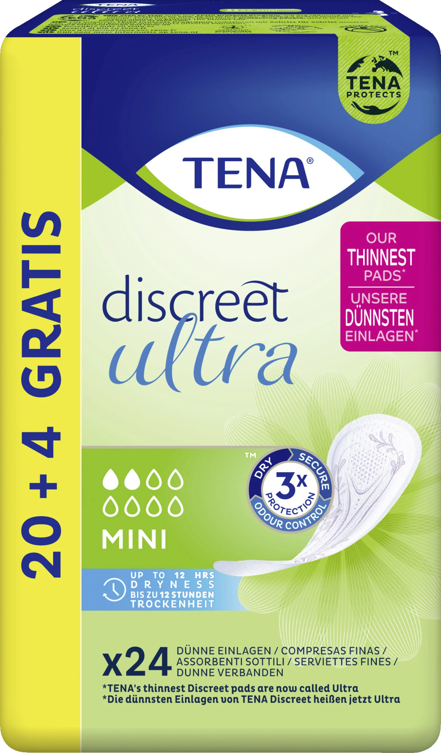 TENA Discreet Mini bietet diskreten und sicheren Schutz bei leichter Blasenschwäche. Die weiche Einlage wurde für Frauen mit sensibler Blase entwickelt und bietet diskreten Schutz Tag für Tag. Dank microPROTEX™ Technologie werden austretende Flüssigkeit, Gerüche und Feuchtigkeit schnell aufgenommen. TENA Discreet Mini ist ideal bei unerwartetem Tröpfchenverlust und Blasenschwäche, damit Sie zuverlässigen Schutz genießen, wenn Sie ihn brauchen, und Diskretion, wenn Sie sie wünschen.