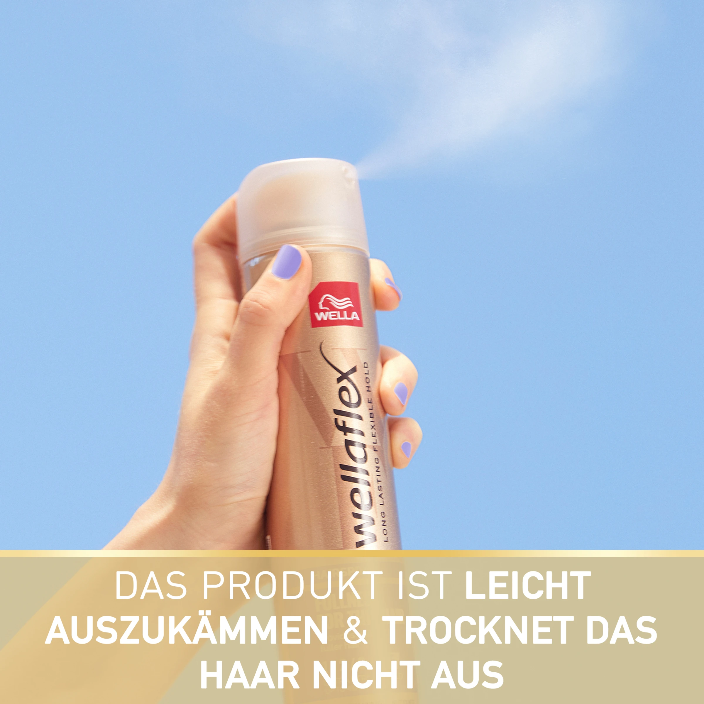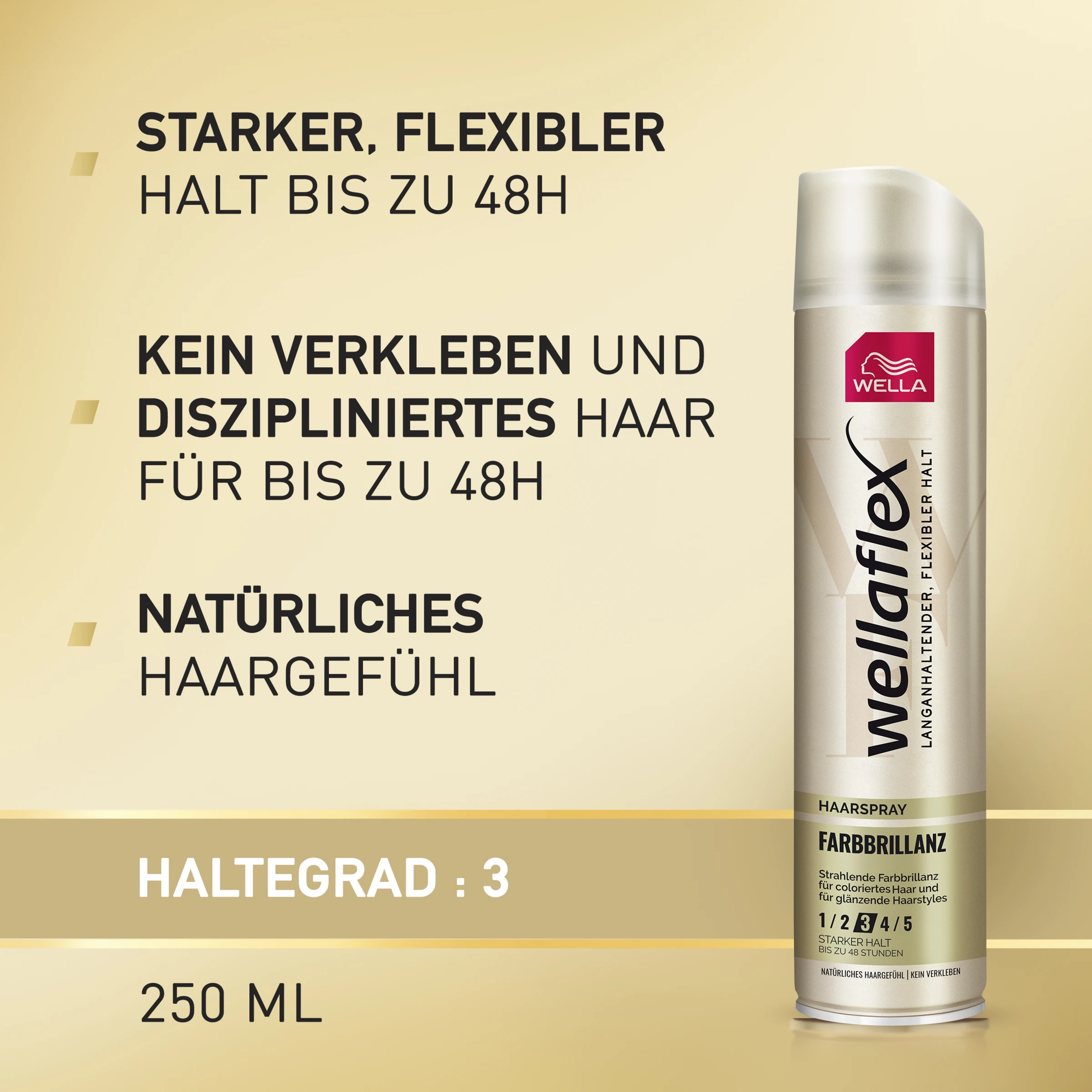 WELLAFLEX FARBBRILLANZ Haarspray mit unserem feinsten Diffusersystem bietet extra starken, flexiblen Halt – für bis zu 48 Stunden.